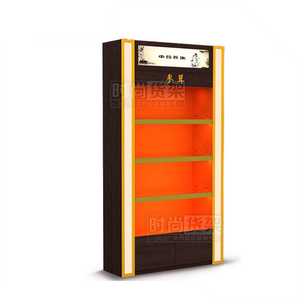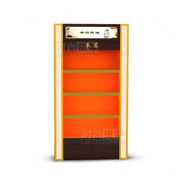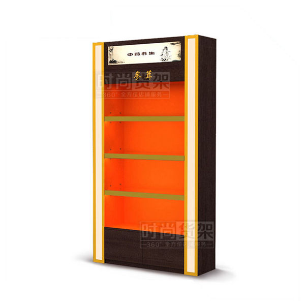 【描述】本款藥店參茸柜是時(shí)尚貨架2017年推出的最新一代藥店參茸背柜,紫檀木紋讓參茸背柜增加了古樸典雅的氣息。雙燈箱設(shè)計(jì)讓整個(gè)參茸區(qū)更醒目,可以有效提醒有意向的顧客前來(lái)選購(gòu)。參茸展示柜底部采用外開門地柜設(shè)計(jì),方便放置更多備用藥材,并進(jìn)行了防鼠設(shè)計(jì),避免珍貴藥材的損失!