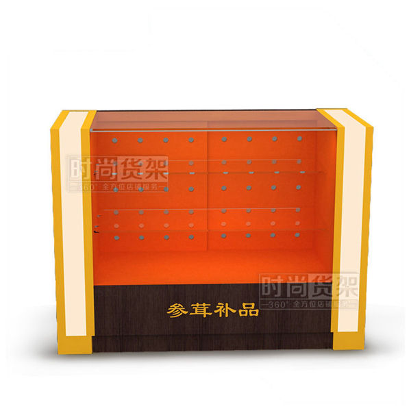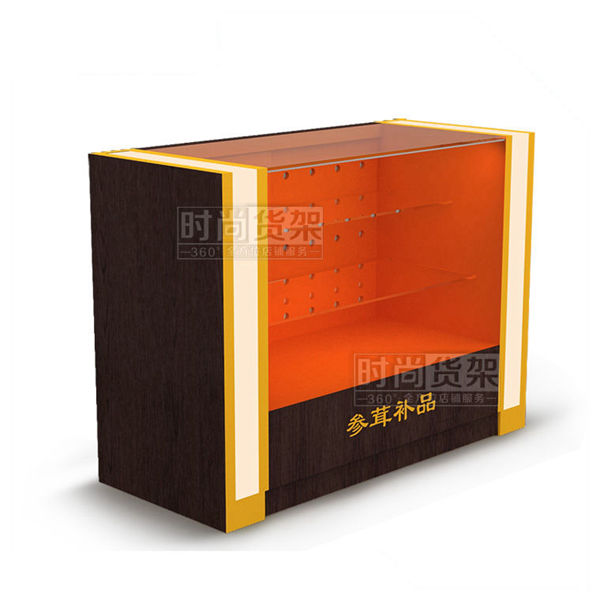 【產(chǎn)品名稱】玻璃參茸柜臺/紫檀木紋參茸前柜/藥店參茸玻璃柜