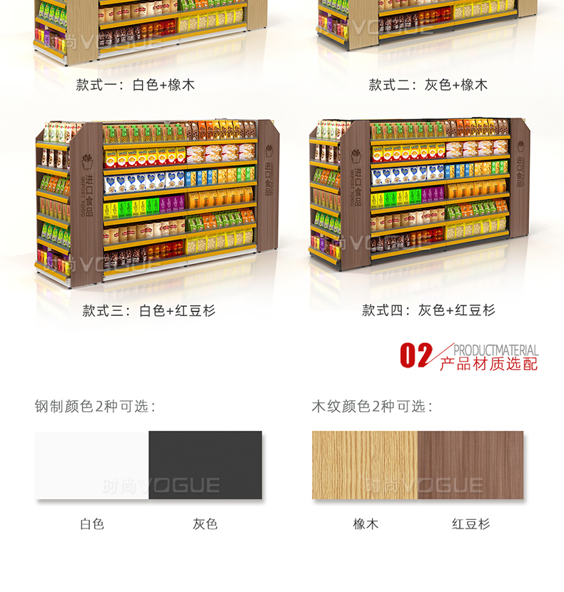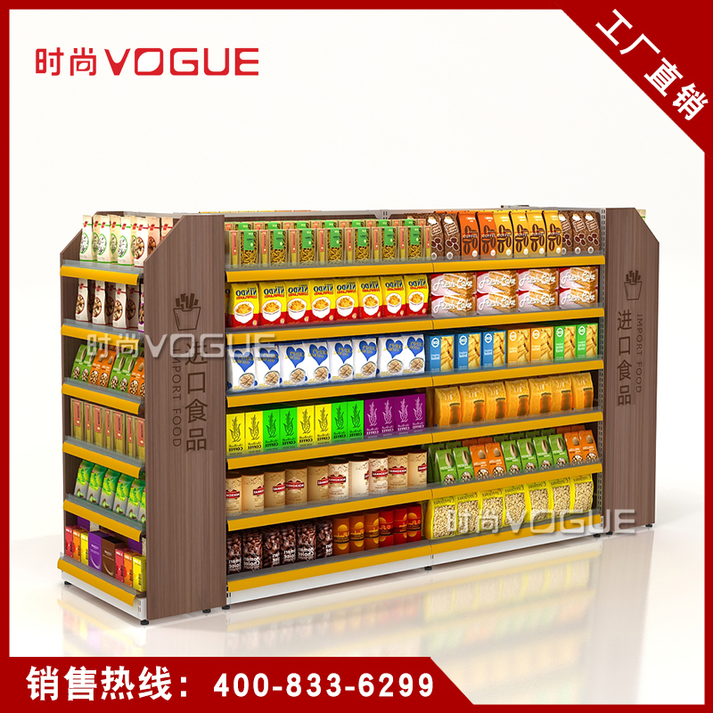 - 產(chǎn)品描述:便利店雙面零食貨架由深圳貨架廠時(shí)尚貨架打造,應(yīng)用于便利店內(nèi)的食品區(qū)域。