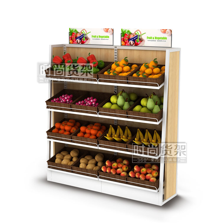 - 產(chǎn)品描述:本款便利店蔬果架是由時(shí)尚貨架設(shè)計(jì)生產(chǎn)的一款木背板單面果蔬架