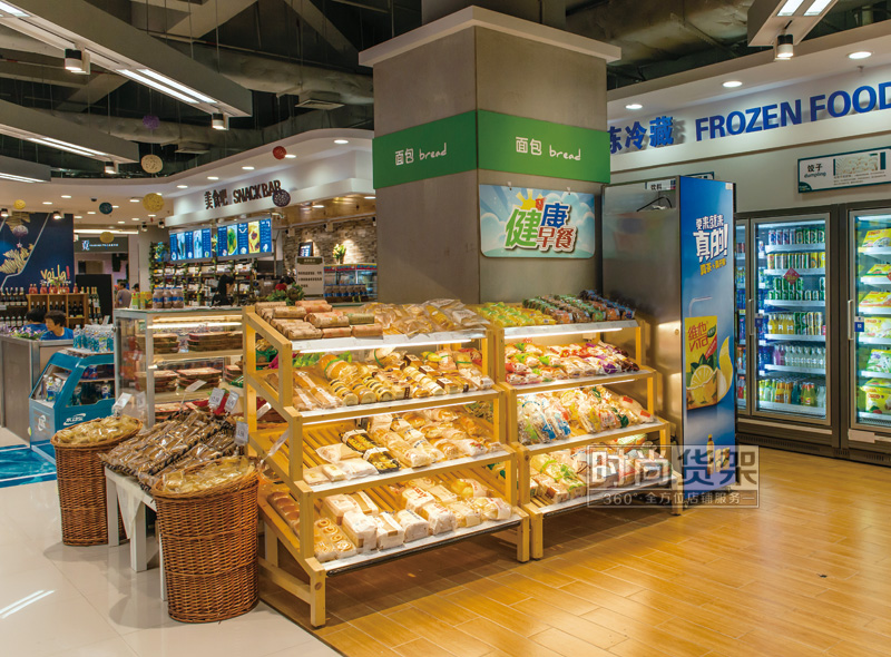 - 產(chǎn)品描述:這是時尚貨架專為超市面包區(qū)打造的一款超市實(shí)木面包架。