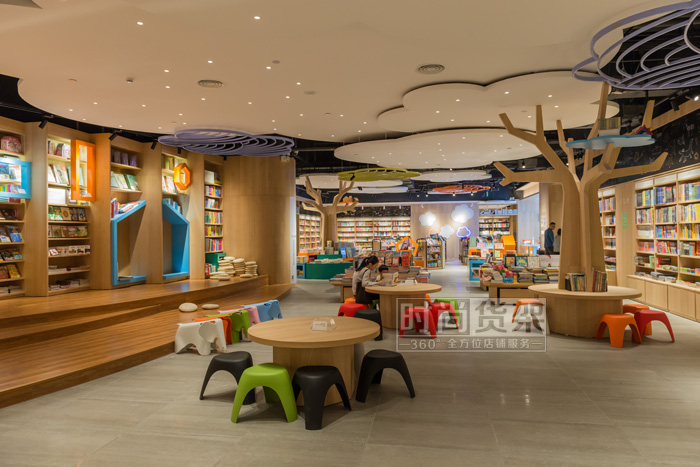 像云朵一樣的天花吊頂、大樹一樣的柱子,將兒童讀物區(qū)營(yíng)造成了“童話世界”。