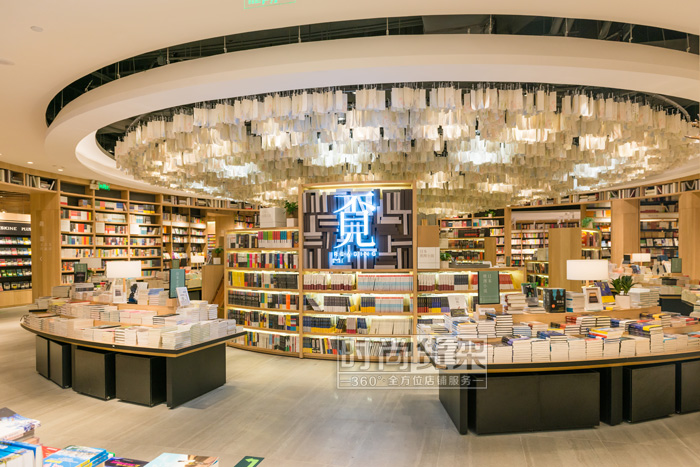 遠(yuǎn)遠(yuǎn)的向書店中庭看去,你還以為天花板上使用的是水晶吊燈,但走近了才發(fā)現(xiàn)它是用一頁(yè)頁(yè)書簽紙做的創(chuàng)意吊燈!質(zhì)樸的材質(zhì)卻讓中庭獲得了華麗的視覺外觀。
