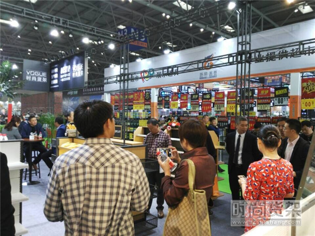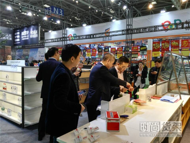 前來參觀的觀眾聚集在時(shí)尚貨架的展位內(nèi),仔細(xì)欣賞時(shí)尚貨架的每一款陳列道具。