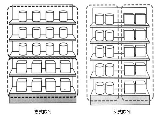 將同類商品以上下層的方式縱向陳列在貨架上,更方便消費者挑選所需商品。