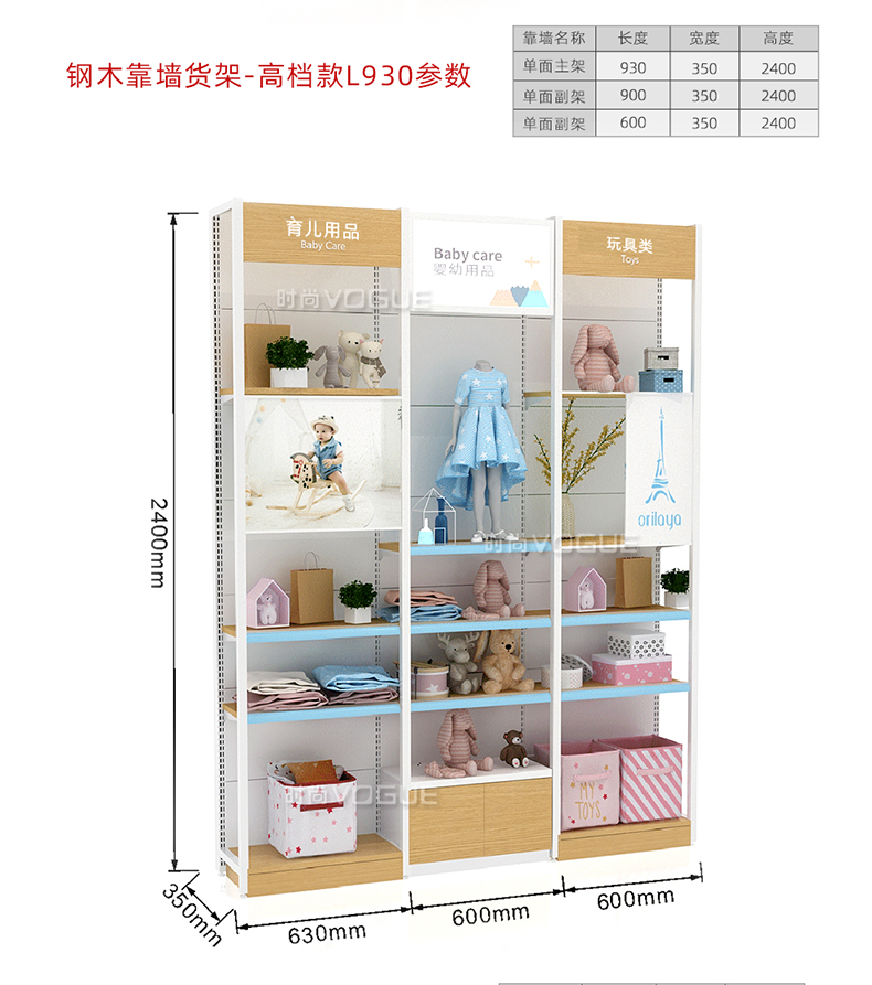 母嬰店貨架_靠墻四柱貨架