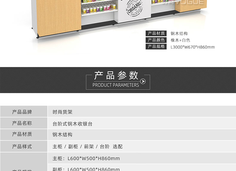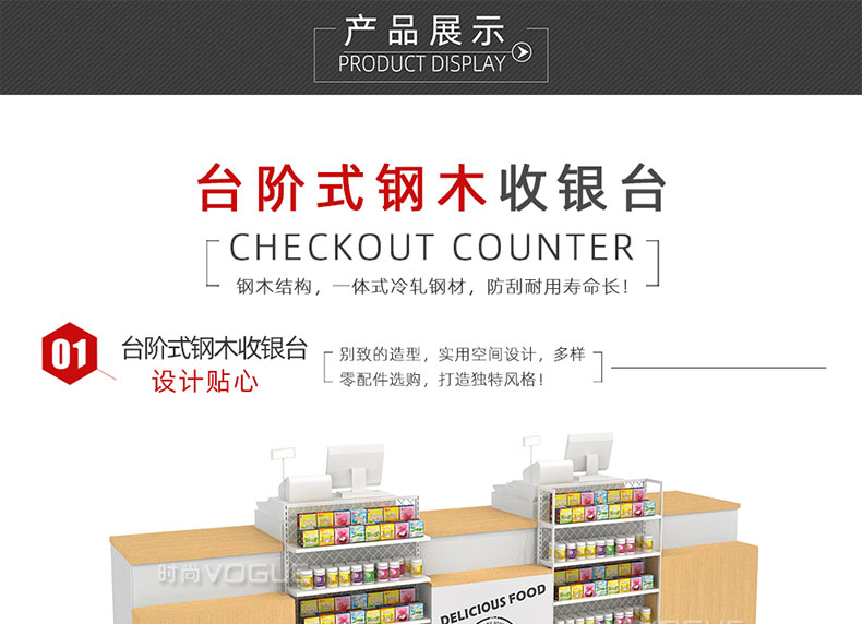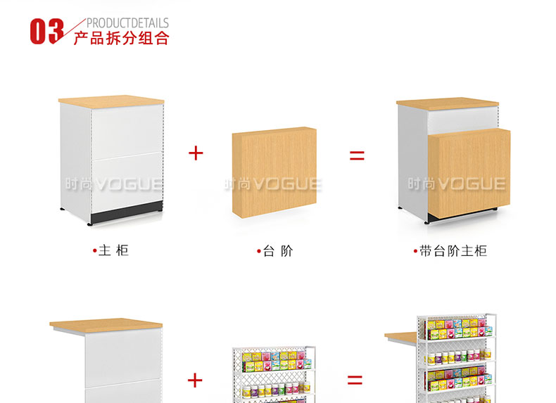 - 產(chǎn)品描述:這是時(shí)尚貨架針對(duì)母嬰店收銀區(qū)陳列最新推出的一款組合式收銀臺(tái)。