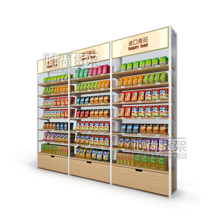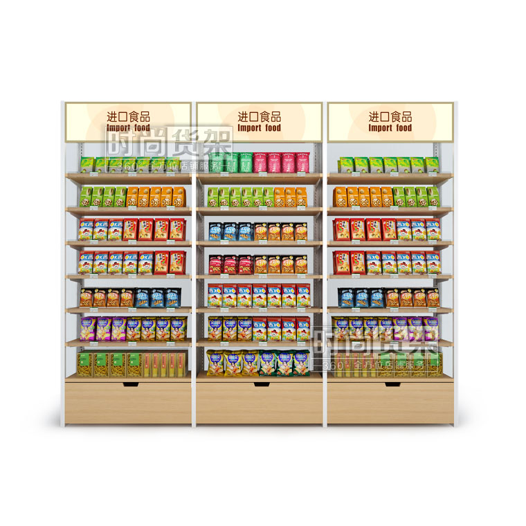 - 產(chǎn)品描述:這款單面便利店貨架是深圳貨架廠時(shí)尚貨架專為便利店零食區(qū)域所打造的陳列道具,商品展示效果佳。