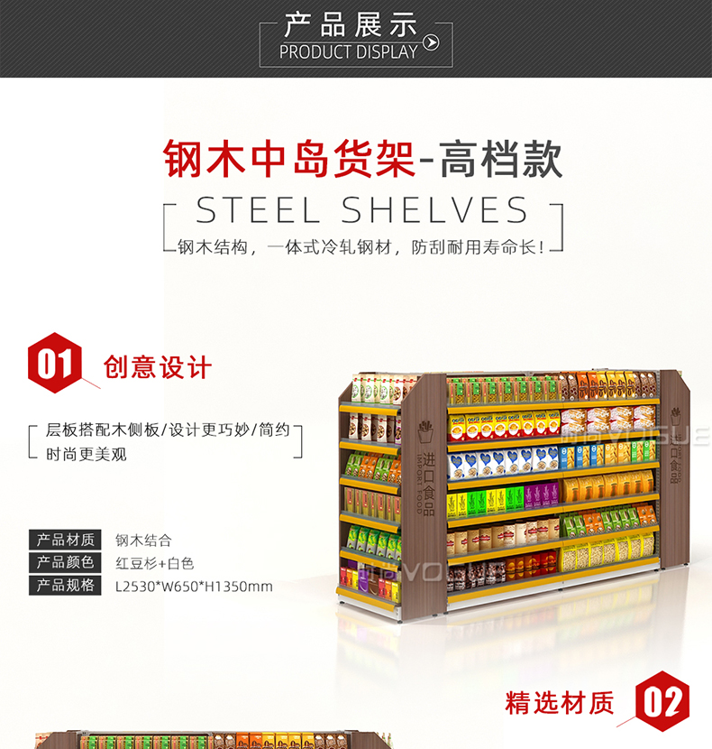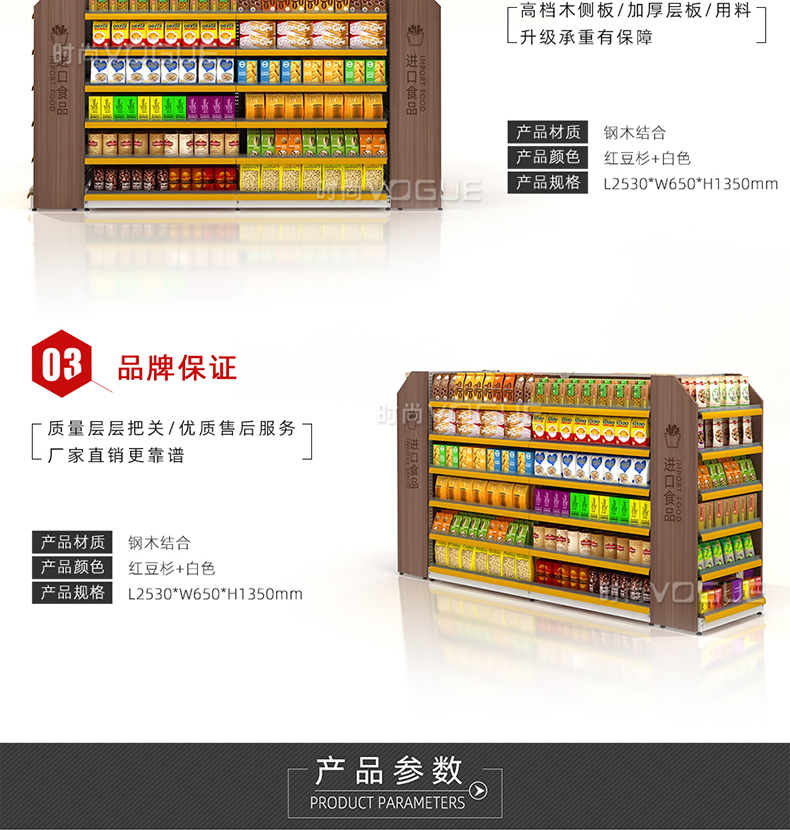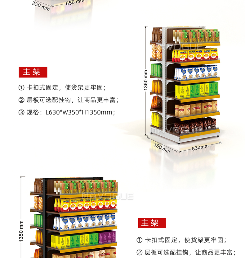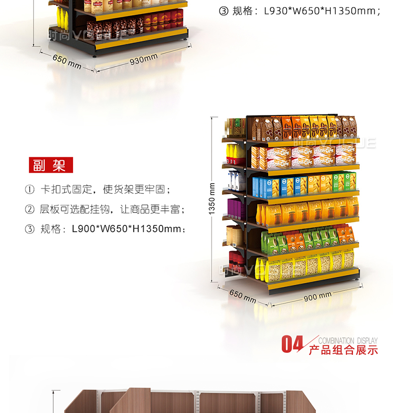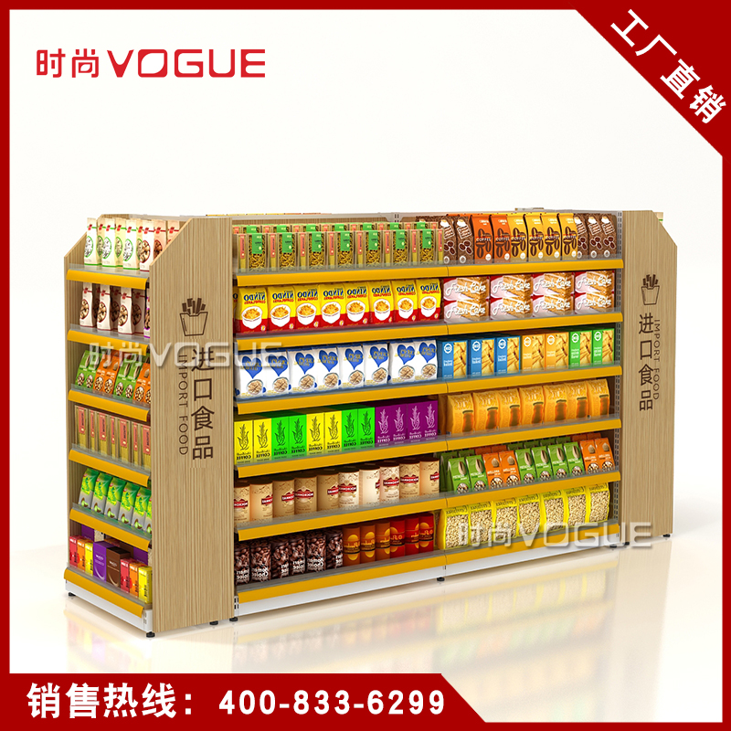 - 產(chǎn)品描述:便利店雙面零食貨架由深圳貨架廠時(shí)尚貨架打造,應(yīng)用于便利店內(nèi)的食品區(qū)域。