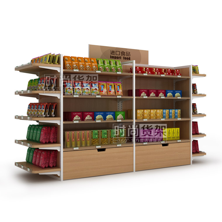 便利店貨架_進(jìn)口食品區(qū) (雙面木背板)
