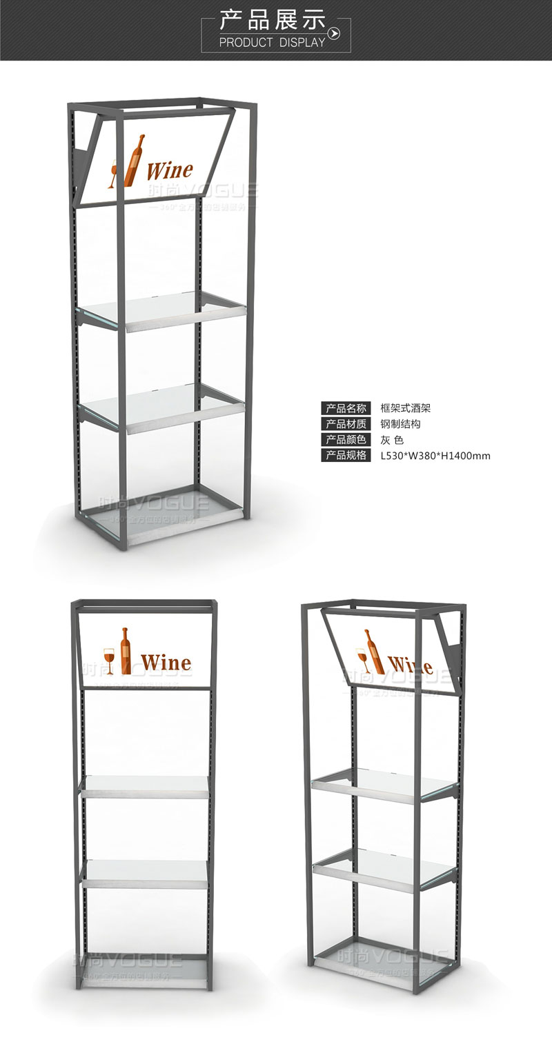 - 產(chǎn)品描述:此款便利店貨架是時(shí)尚貨架專為便利店客戶設(shè)計(jì)的一款框架式白酒展示架。