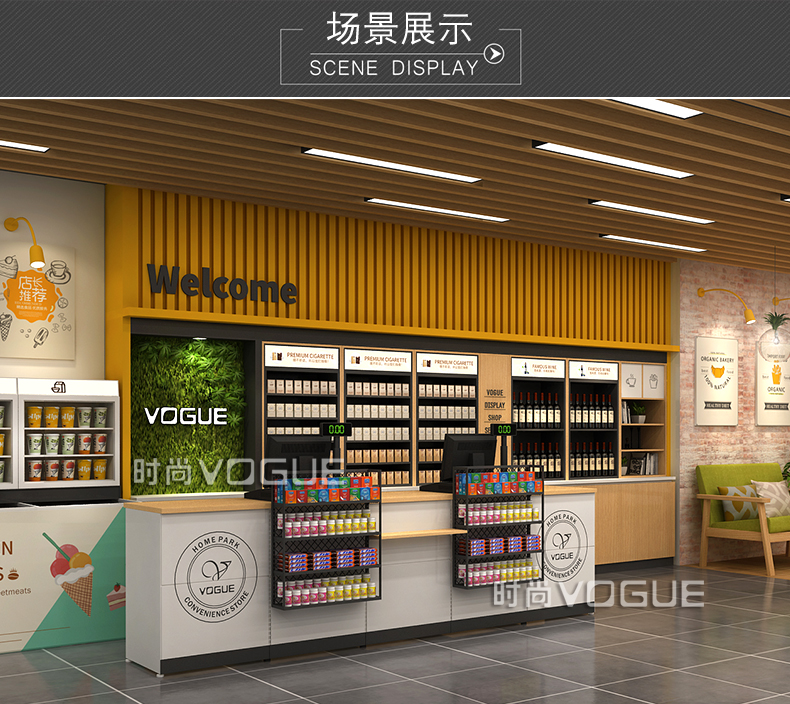 - 產(chǎn)品描述:本款便利店收銀臺是時(shí)尚貨架為連鎖便利店設(shè)計(jì)生產(chǎn)的一款多功能組合式便利店收銀臺。