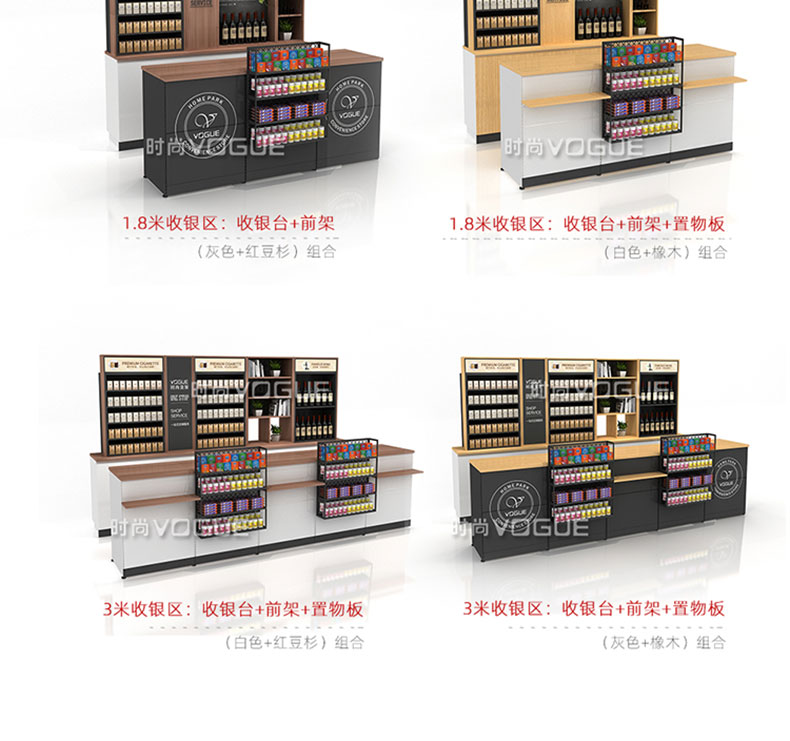 【樣式】主柜+轉(zhuǎn)角柜+側(cè)柜+后柜,可配置小前架、置物板、收銀抽屜