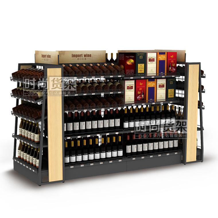【產(chǎn)品名稱】紅酒中島貨架/便利店紅酒展示架/網(wǎng)背板紅酒貨架