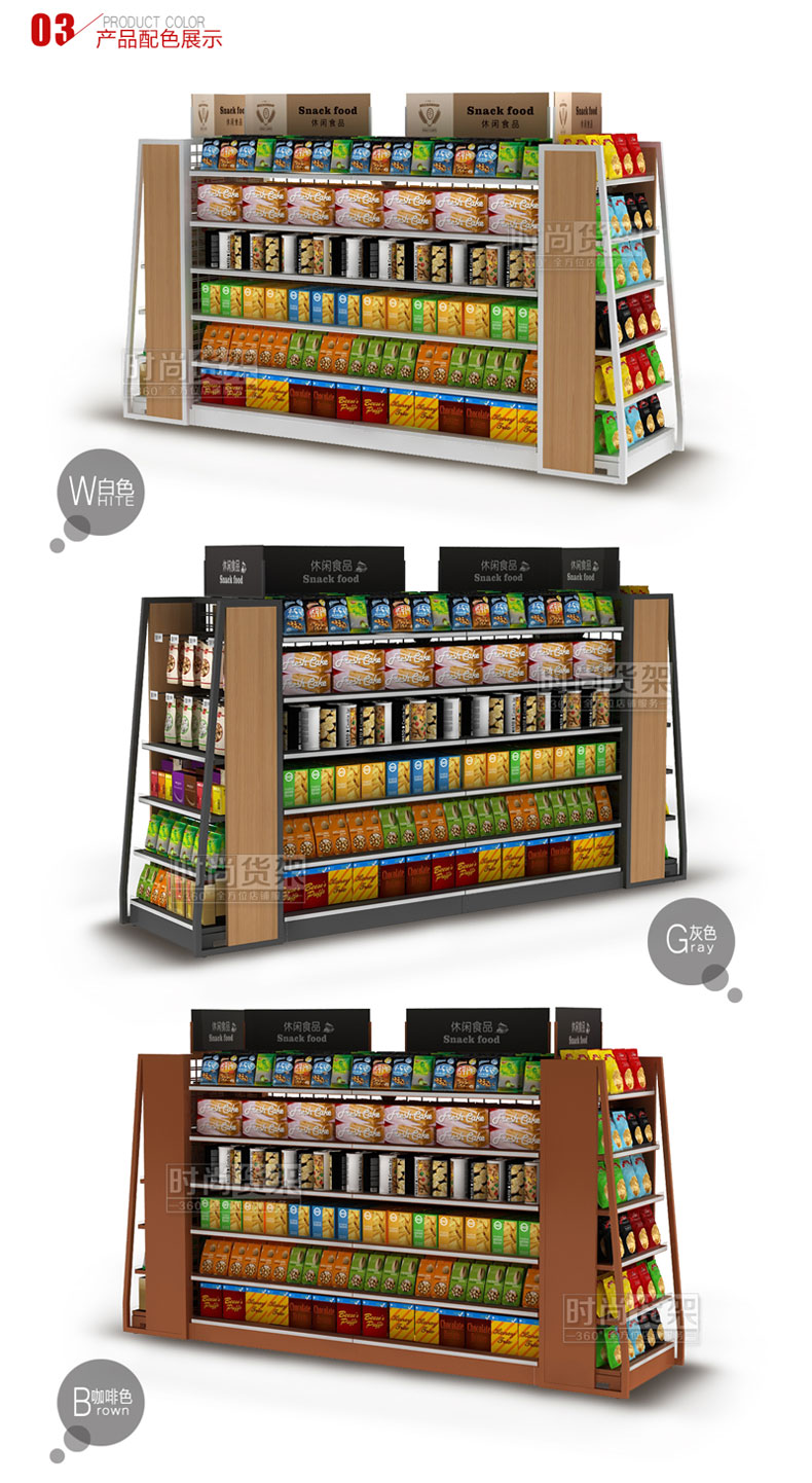 • 產(chǎn)品描述:此款貨架為超市貨架廠家時(shí)尚貨架專為超市食品區(qū)域打造,整體框架由優(yōu)質(zhì)冷軋鋼材精制而成,承重性強(qiáng)。