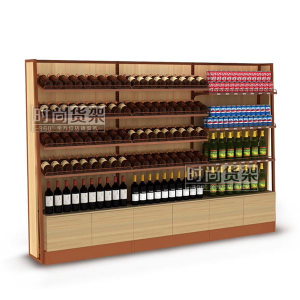 單面紅酒貨架是深圳貨架廠時(shí)尚貨架專為超市紅酒區(qū)打造的陳列道具,冷軋鋼材質(zhì)的框架使其擁有更強(qiáng)大的承重性能。