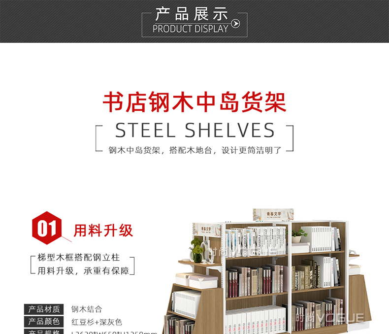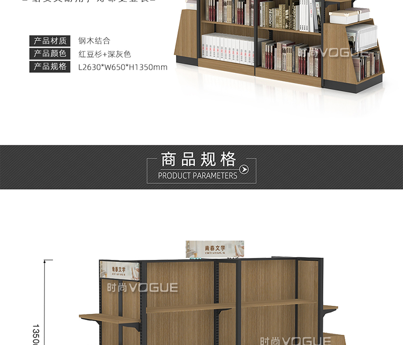 - 產(chǎn)品描述:這是時(shí)尚貨架專為書店圖書陳列打造的一款圖書店書架。